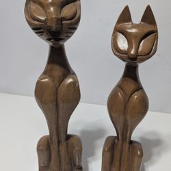 Vintage Mid-Century Modern Hand Carved Wood Cat Sculptures 11" & 12.5" Tall Decor$30Stockton, CA