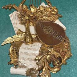 84oz Vintage 1971 Syroco 7236 Gold Gilt Wall Art Plaque Music Mandolin Harp Lyre MCM -Syroco Wood$45Dublin, CA