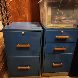 Pair Of Vintage Blue Metal File Cabinets W/ Wooden Handles$45Ripon, CA