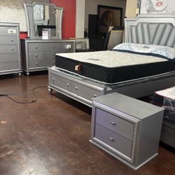 4pc Queen Bedroom Set With Queen Bedframe Dresser mirror Nightstand On Sale Now Dont Miss$899Stockton, CA