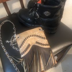 Harley Davidson Woman Boots Size 81/2 And Leather Over Shoulder Bag.normal Wear.$ 40 Obo For Both.$40Stockton, CA