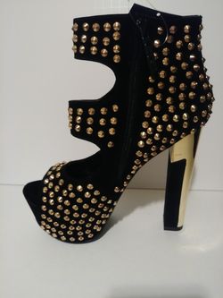 Womens Black Velvet Gold Studded Short Boots 8.5$60Stockton, CA