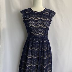 Maeve Anthropologie Blue Tan Lined Lace Short Sleeve Midi Dress Size XSmall$29Stockton, CA