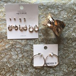 Earring Holder Organizer, 360 Rotating Jewelry Holder with Ring Tray/Necklace/Bracelet/Ring Hooks, White Earring stand with 4 Sides and 2 Wooden Trays$12Ceres, CA