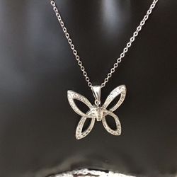 925 Sterling Silver White Diamond Butterfly Pendant Necklace | White CZ | 16” Box Chain$30Modesto, CA