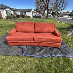 Orange thee-seater couch$0Modesto, CA
