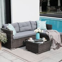 L Shape Couch With coffee Table Gray Wicker with Gray Cushions New$425Stockton, CA