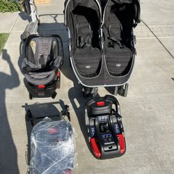 Double Stroller With Britax Car Seat Adapter, Bassinet Attachement And Roller Board For Older Kids$350Antioch, CA