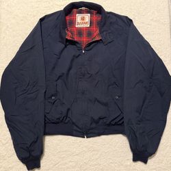 Baracuta G9 Blue/Navy Harrington Jacket Size 52R Tailored in Taiwan R.O.C. -Shell: 65% Polyester, 35% Cotton -Body Lining: 100% Rayon -Sleeve Lining: $220Dublin, CA