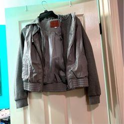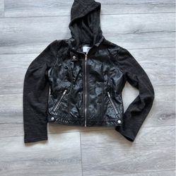Faux leather jacket with hood and sweater sleeves$10Oakley, CA