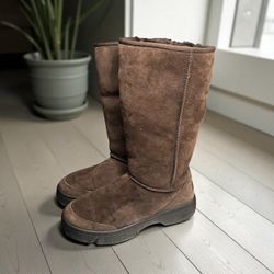 UGG Australia Ultimate Shearling Lined Tall Brown Leather Suede Braid Boots$60Stockton, CA