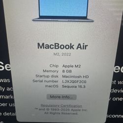 Mac Book air 13 In 256gb, M2$700Antioch, CA