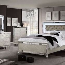 Brand New 4 Piece Silver Bedroom Set with LED Lighting and Mirror Trim$1,799Tracy, CA