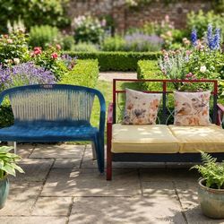 2 pcs bench 1 wrought iron and 1 resin with pillow$120Livermore, CA