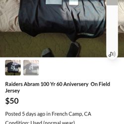 Raiders Abram 100 Yr 60 Aniversery On Field Jersey$50French Camp, CA