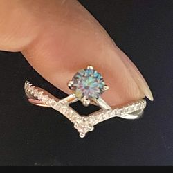 Blue Green Moissanite Ring In Sterling Silver 925 Size 6, 7 & 8$82Castro Valley, CA