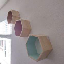 Hexagon Shelves, Wall Mounted Wood Set Of 3 ,New Conditions $12Salida, CA