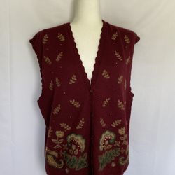 Vintage Women's Fall Embroidered Dark Maroon Beaded Sweater Vest Button Down L$23Stockton, CA