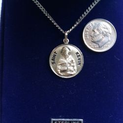 Sterling Silver St Kevin Medal on a 24-inch stainless steel chain. Religious jewelry.$32Stockton, CA