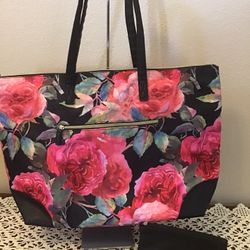 XL Bright Rose Tote (Shoulder Bag , Purse)+ Bonus Makeup Bag. Like New! Bolso Rosa Primaveral XL + Cosmetiquero Color Negro. Se Habla Español .$45Manteca, CA