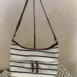 NWOT White/Navy/Brown Striped Tote Bag, Shoulder Bag, Purse. / Cartera o Bolso Nuevo Sin Etiqueta (Se Habla Español) $37Manteca, CA