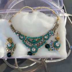 Beautiful Turquoise And Gold Necklace And Earring Set $10Tracy, CA