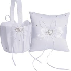 Wedding Ring Pillow and Flower Girl Basket Set – Adorned with Pearl Rhinestones$25Modesto, CA