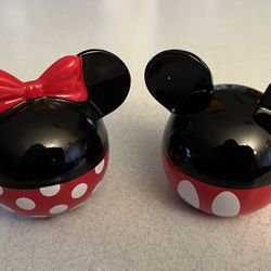Disney Mickey Minnie Mouse Salt & Pepper Shakers Ceramic 3" Tall Red Black$6Visalia, CA