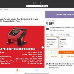 M12 Milwaukee Inflator With Accessory Parts, Battery And M12 Charger. $170Tulare, CA