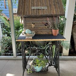 Antique Singer Heavy Metal Sewing Machine Base with Extra Large Grey-Blue Bird House and Plant$475Exeter, CA