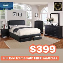 Full Bed Frame With Drawers And Free Mattress / Cama Matrimonial Con Cajones Y Colchón Incluido $399Tulare, CA