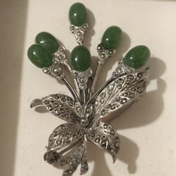 Vintage Sterling Silver New Zealand Jade & Marcasite Flower Pin Brooch$145Porterville, CA
