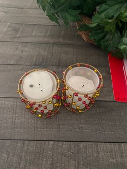 Glass Candle Holders With White Rose Decor $25Dinuba, CA