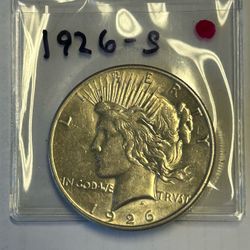 1926 – S Peace Silver Dollar. 90% Silver.$75Dinuba, CA