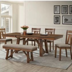 6 Pc Brown Wooden Dining Table + Double Extension Leaf Set $799Tulare, CA
