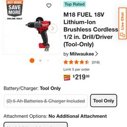 Milwaukee M18 Fuel Combo Kit$275Visalia, CA