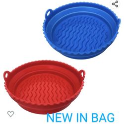 2-Pack Silicone Air Fryer Liners, 8in Foldable/Collapsible. Heat Resistant & Easy Cleaning. Fits 3 to 5 Qt Air Fryer. (Blue+Red)