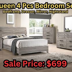 Queen Bed Set 4 Pc Dresser Mirror And Nightstand $799Tulare, CA