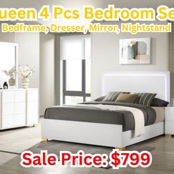 Queen Bedroom Set LED Headboard, Dresser, Mirror And Nightstand $599Visalia, CA