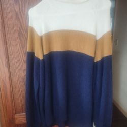 J Crew Turtle Neck Pull Over Sweatshirt Blue Cream Tan Xl Wool/Alpaca $20Lemoore, CA
