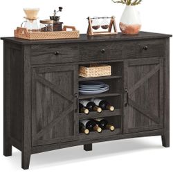 Farmhouse Buffet Cabinet with Detachable Wine Rack, Sideboard Cabinet with Drawers and Doors, Adjustable Shelves, for Living Room, Kitchen, Stone Gray$129Tulare, CA