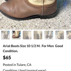 Cowboy boots Ariat 65$ the other ones 100 and work boots$65Tulare, CA