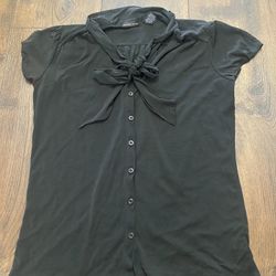 Womans Black Sheer New York & Company Stretch Shirt With Bow Large #4$3Atwater, CA