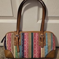 Fossil Multicolor Striped Satchel Top Handle Bag Brown Leather Buckle Accent$25Modesto, CA