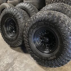 (4) 15” Jeep Aftermarket 5x4.5 Pattern Rims & 35” Tires ~ Good Tread ~ Wrangler TJ older lifted cherokee etc $680Modesto, CA
