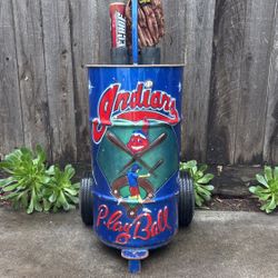 Vintage Indians Oil Barrel Baseball Bat And Leather Glove Cart Homemade Hand painted Air Brush Handmade Softball$100Modesto, CA