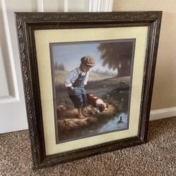 Home Interior Framed Artwork Picture- Boy, Cocker Spaniel Dog By Water$40Modesto, CA