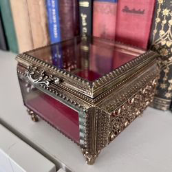 Vintage Brass Filigree Red Glass Jewelry Box$55Turlock, CA