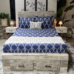 Full Size Bedroom Set. Includes Two Nightstands, A Dresser With Mirror And Storage At The Foot Of The Bed.$775Atwater, CA