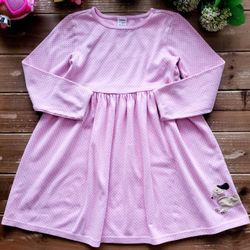 SIZE 7 GIRLS BLUSH CARNATION W/BROWN PIN DOTS LONG-SLEEVE DECORATED DASCHUND DRESS $4Merced, CA